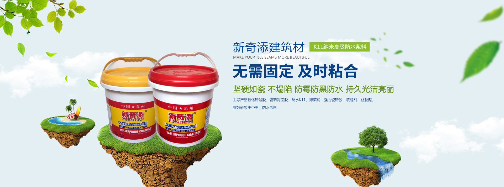 新奇添防水建材主營(yíng)高分子防水卷材、改性瀝青防水卷材、防水涂料、排水保護(hù)板等生產(chǎn)線,主導(dǎo)產(chǎn)品聚氯乙烯(PVC)內(nèi)增強(qiáng)防水卷材,聚氯乙烯(PVC)防水卷材,聚烯烴(TPO)防水卷材,SBS/APP改性瀝青防水卷材,三元乙丙(EPDM)橡膠防水卷材,自粘防水卷材,聚氨酯防水涂料、JS防水涂料、丙烯酸防水涂料、聚脲彈性體(SUPA)防水涂料以及各種止水、密封、加固、堵漏材料,規(guī)格齊全,性能穩(wěn)定。廣泛應(yīng)用于各類地鐵、隧道、水利環(huán)保工程、垃圾掩埋場(chǎng)、化工、民用建筑等多個(gè)領(lǐng)域的防水、防滲、防腐工程。